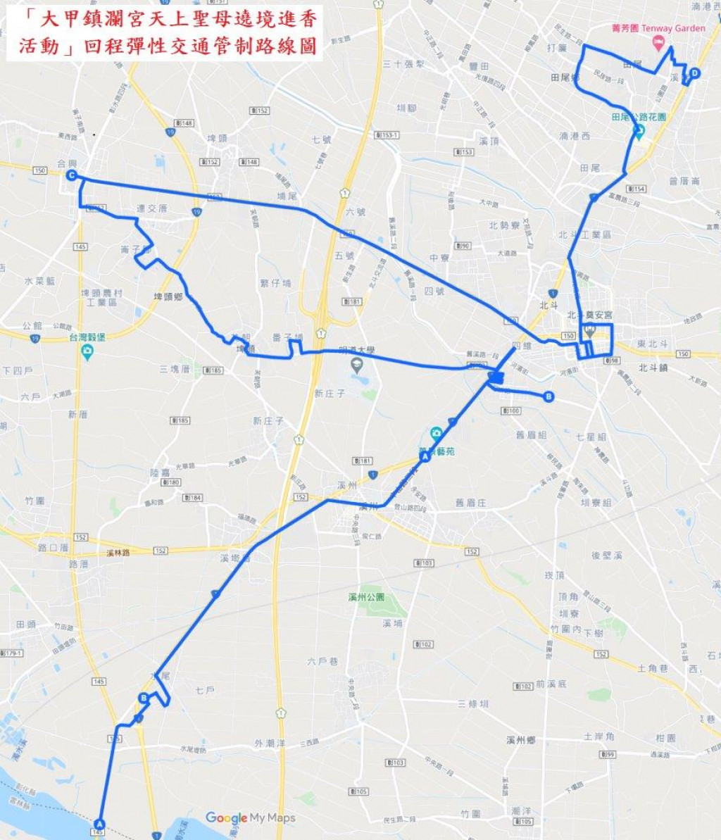 轉知:彰化縣警察局北斗分局為維護115年4月23、24日「大甲鎮瀾宮天上聖母遶境進香活動」行經期間交通秩序,將視交通狀況彈性管制車輛。